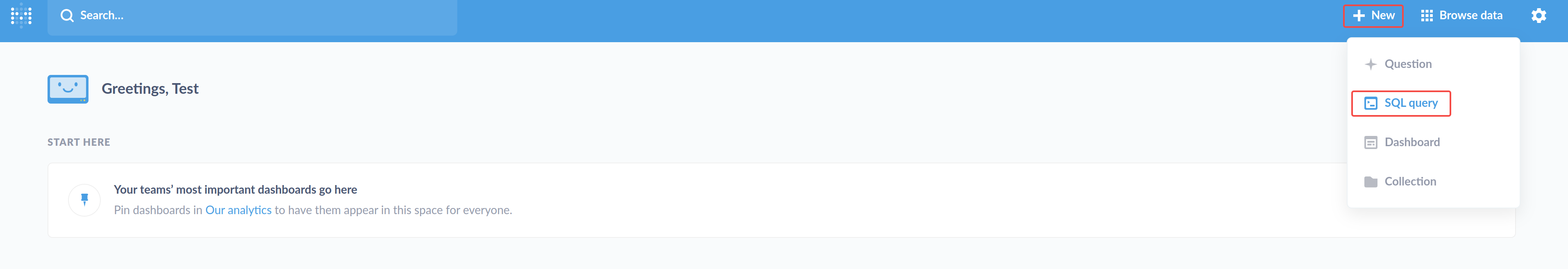 1. Click on the + New in the top-right corner and select SQL query to view the Databend data.